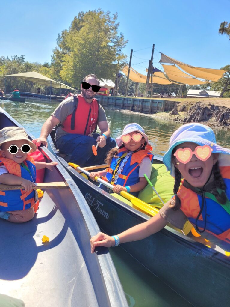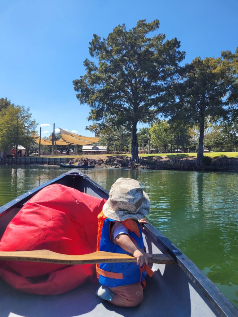 カヌーも夫に娘たちを任せて娘たちがやっている姿をモーリーと見ているだけの予定でした。カヌー乗り場に行ってみると思っていたより大きなカヌーで安定感がありそうでした。年齢制限はありますか?と聞くと『ない』と言われました。モーリーがやりたそうか見てみると本人はやる気満々だったので挑戦することにしました!