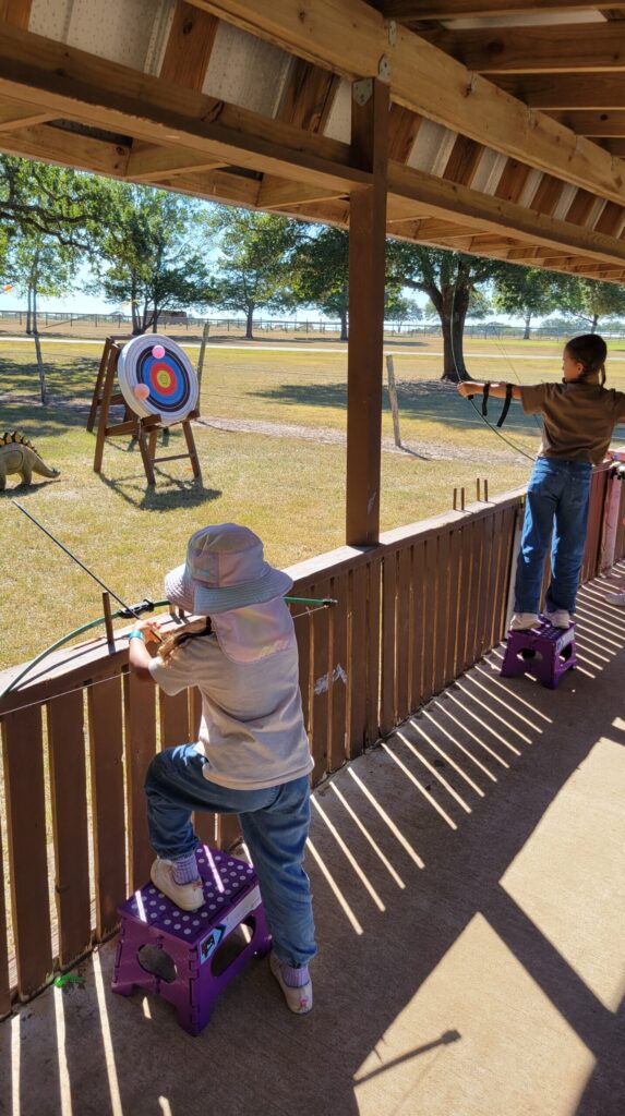 カヌーのあとはもうモーリーが少しぐずって眠そうだったので私はモーリーをお昼寝させて、夫に娘たちをアーチェリーに連れて行ってもらいました。