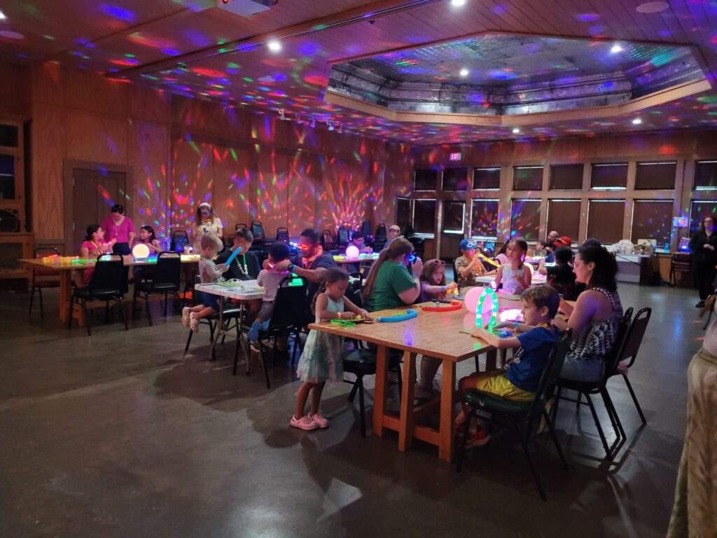 夕食のあとはディスコ&ビンゴゲーム!!みんなおしゃれしていろんな色のライトに照らされてギラギラなディスコと変貌したお部屋に集合!!