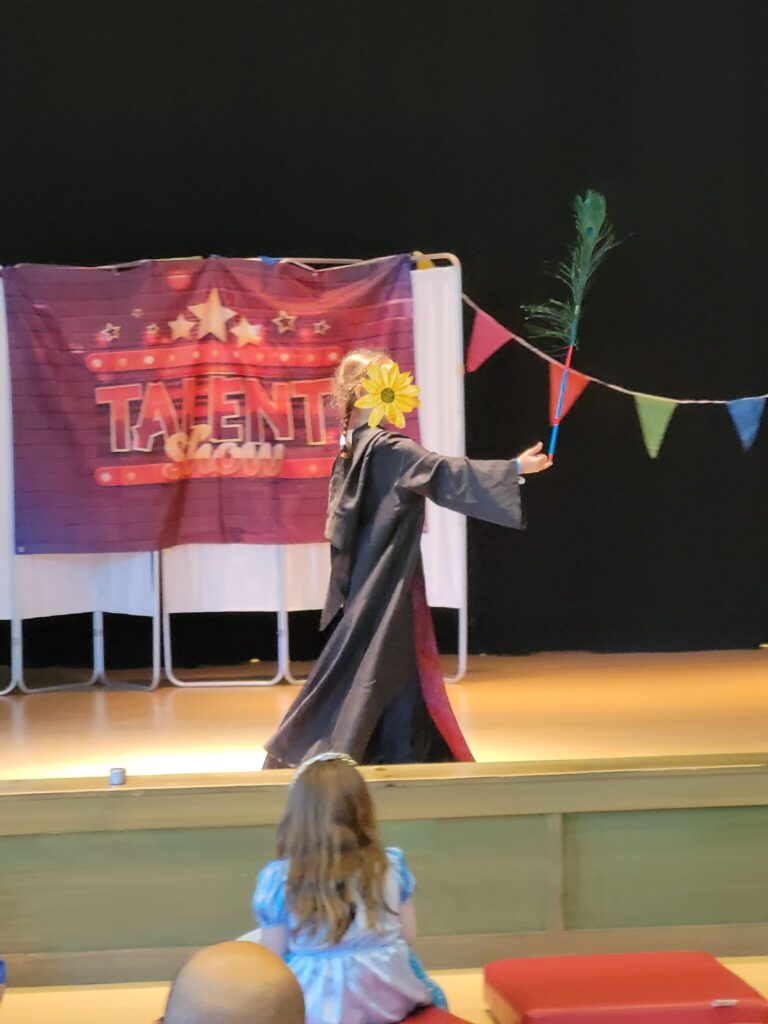 体育館の舞台裏には大きな衣裳部屋があり、好きなコスチュームや衣装を選んで着ることができました。子供たちはそれぞれ好きな衣裳を選んでドレスアップしてテンション爆上がりでした!!遊んだ後は得意なことや新しく挑戦したことを発表するタレントショーが行われました!ダンス、カラオケ、手品など…それぞれのびのびやりたいことを思いっきり発表していました。
